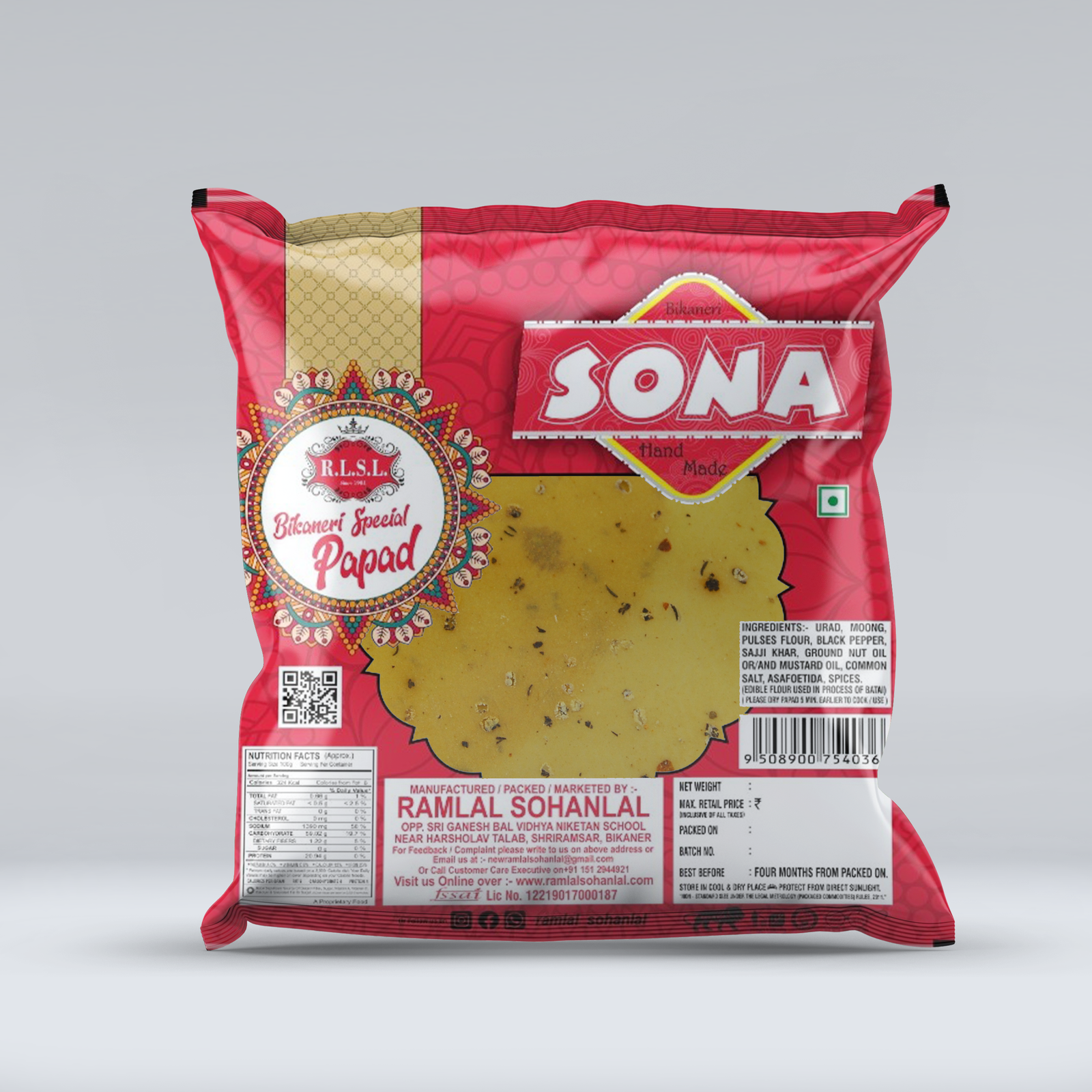 Thin, crunchy papad created using the bold flavors of Moong Dal, Urad Dal, Pepper and javitri, adding a flavorful Javitri twist!